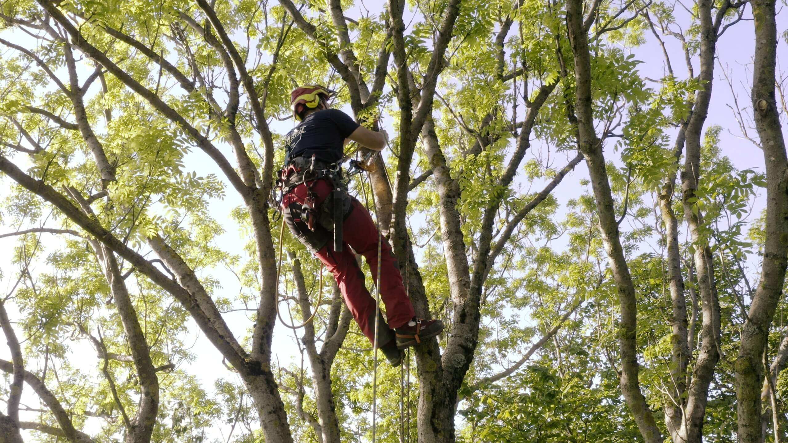 Wir haben viel Erfahrung mit Seilklettertechnik, so dass wir damit auch Baumfällungen an schwer zugänglichen Stellen sicher und zuverlässig durchführen können.